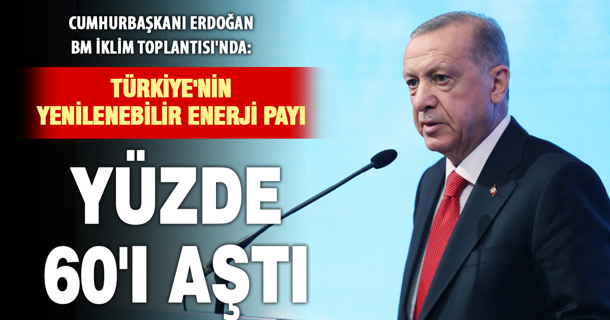 Yenilenebilir enerji konusunda, Erdoğan, “Bu yıl itibariyle toplam kurulu güç içinde yenilenebilir enerjinin payını yüzde 60’ın üzerine çıkardık” dedi.
