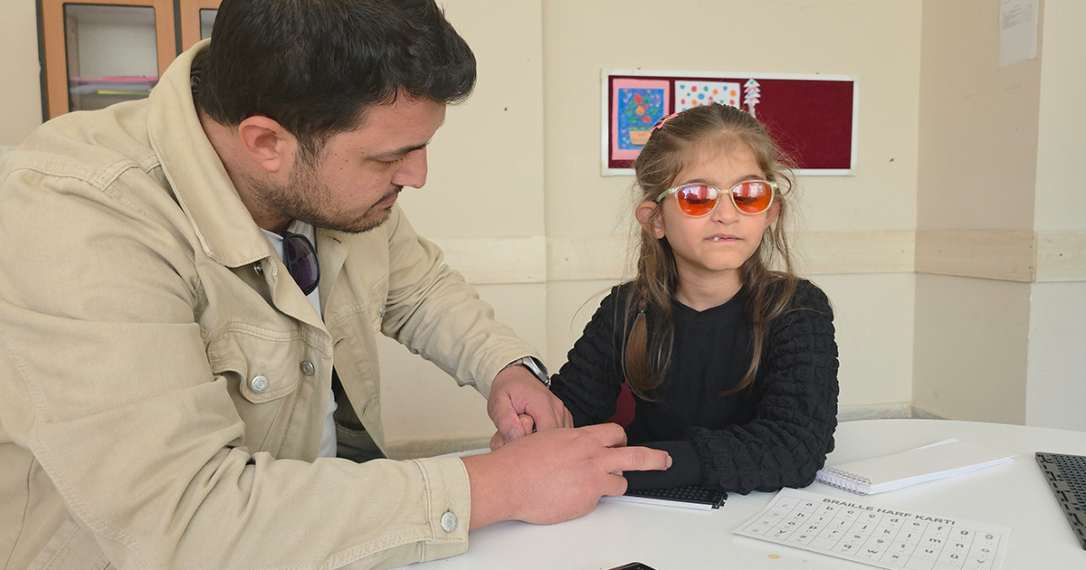 İzmir’in Tire ilçesinde yaşayan 8 yaşındaki Defne Efe, görme engelinin %90 olmasına rağmen eğitimine olan tutkusu ile çevresindekilere örnek oluyor. Aydınoğulları İlkokulu’nda 2.